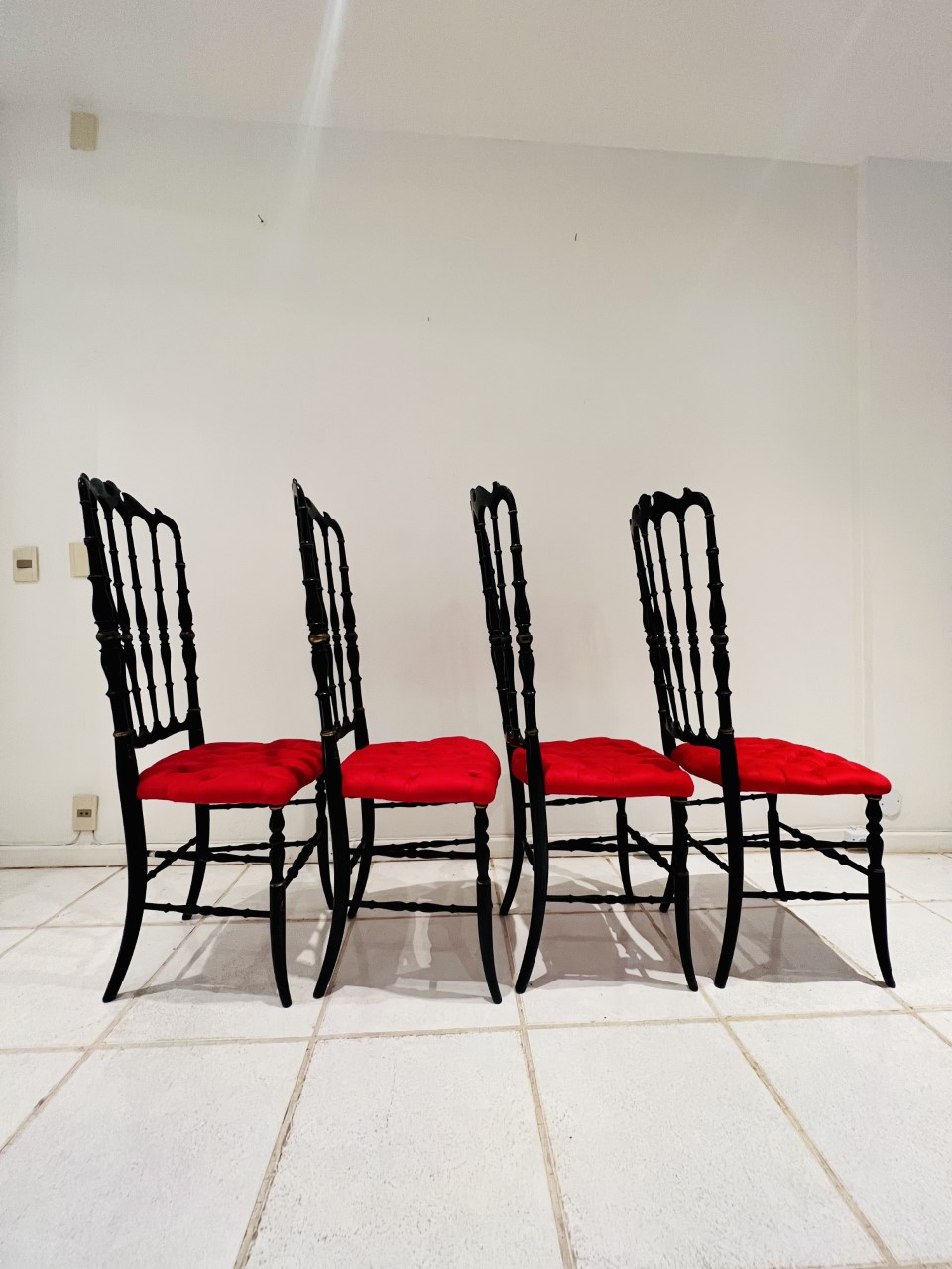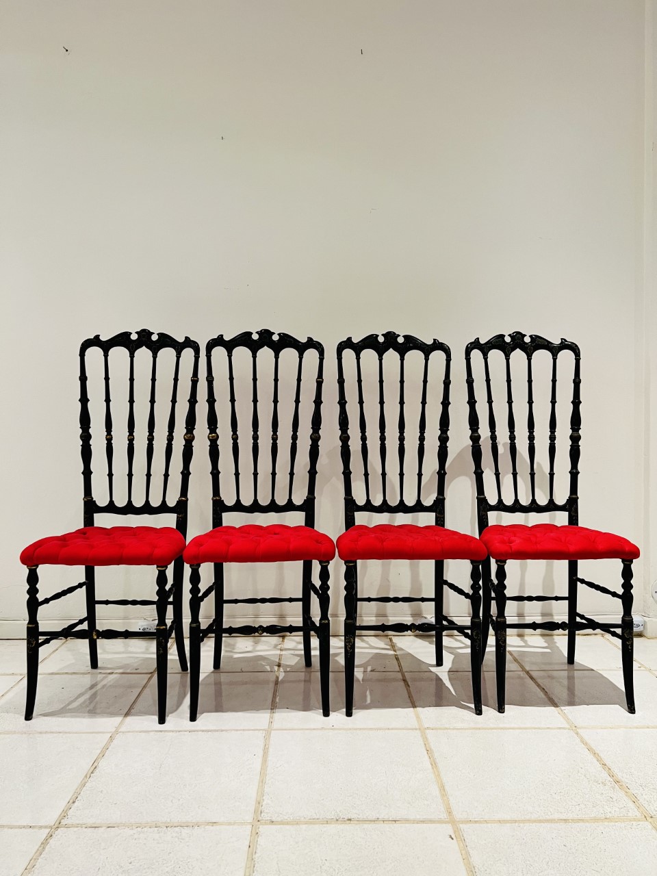 Conjunto de 4 cadeiras Venezianas em madeira laqueada e pintura com estofo em tecido sec XIX