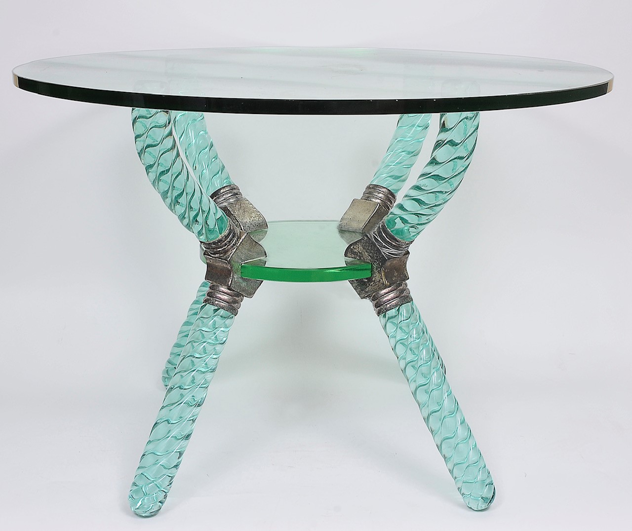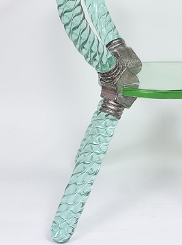 Mesa lateral em vidro artístico soprado de Murano produzido por ARCHIMEDE SEGUSO 1950 e vidro e metal.