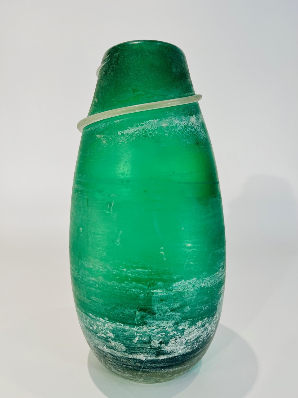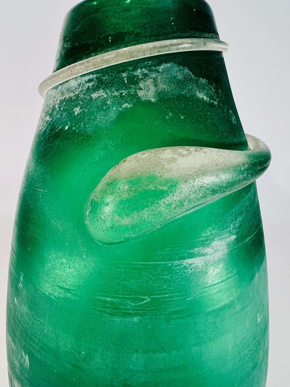 Vaso em vidro artístico soprado de Murano atribuído a Seguso Vetri d’Arte circa 1950 “Corroso” com aplicação.