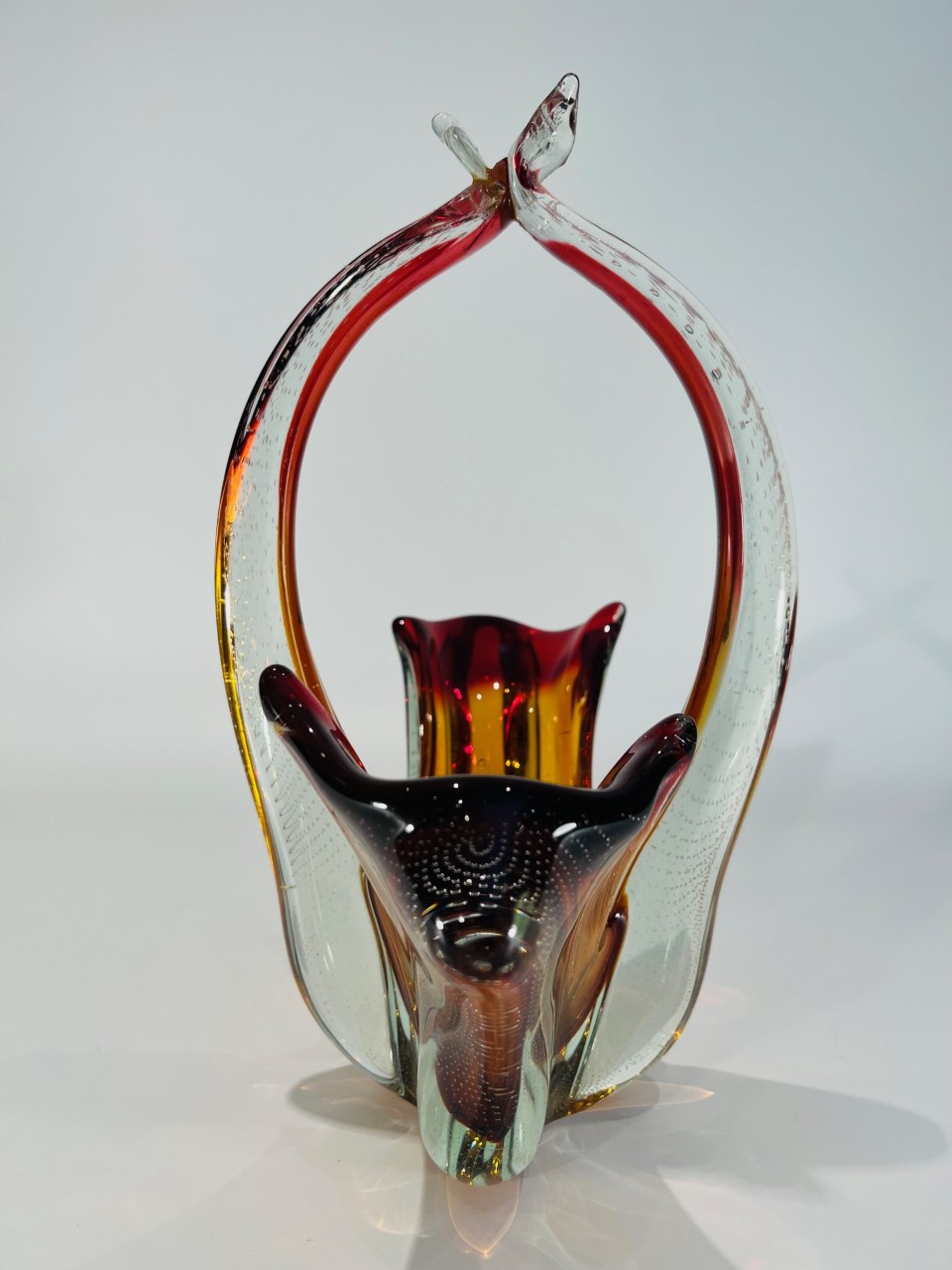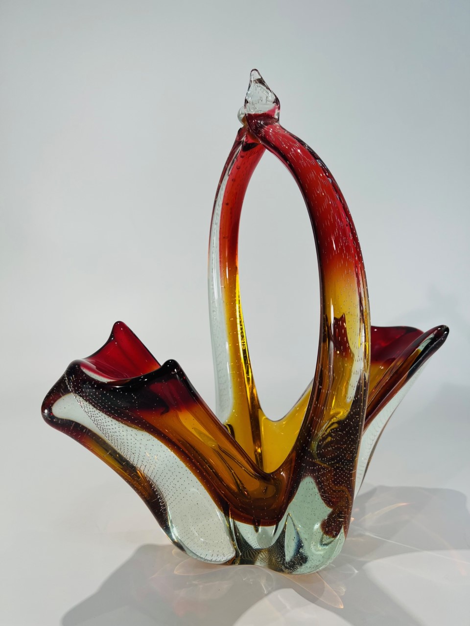 Cesta em vidro artístico soprado de Murano produzido por Itamo Pusteto circa 1950