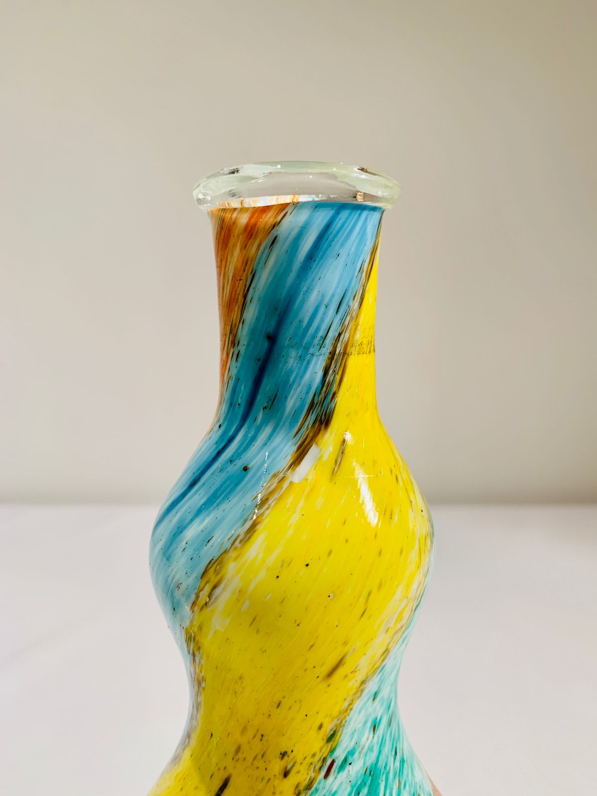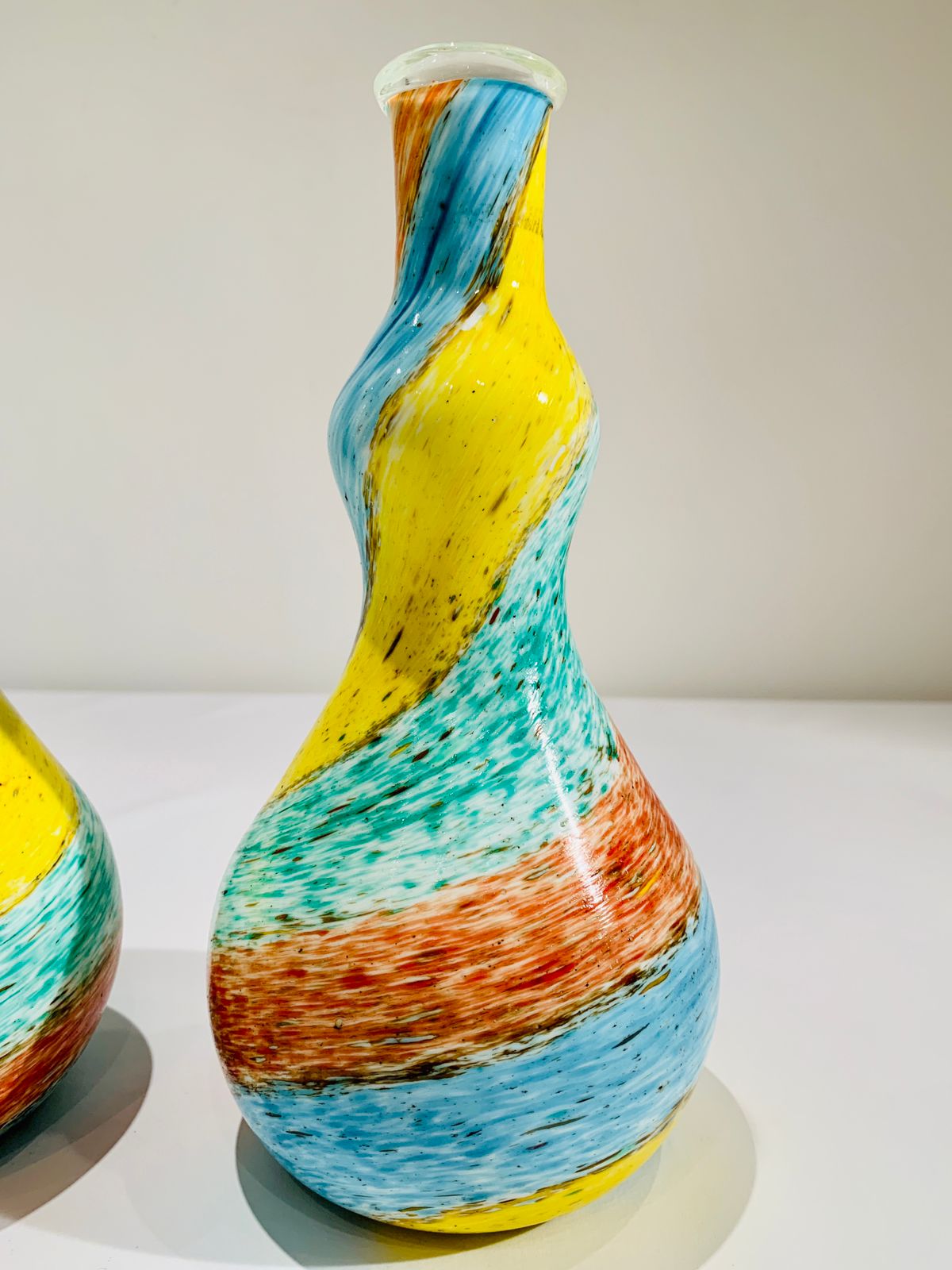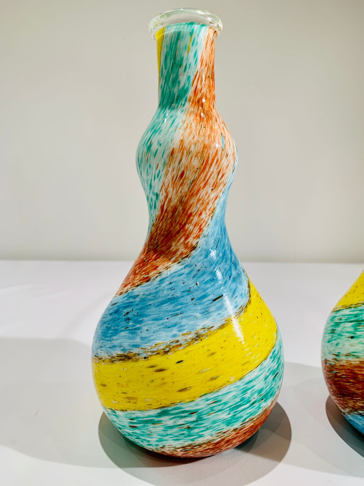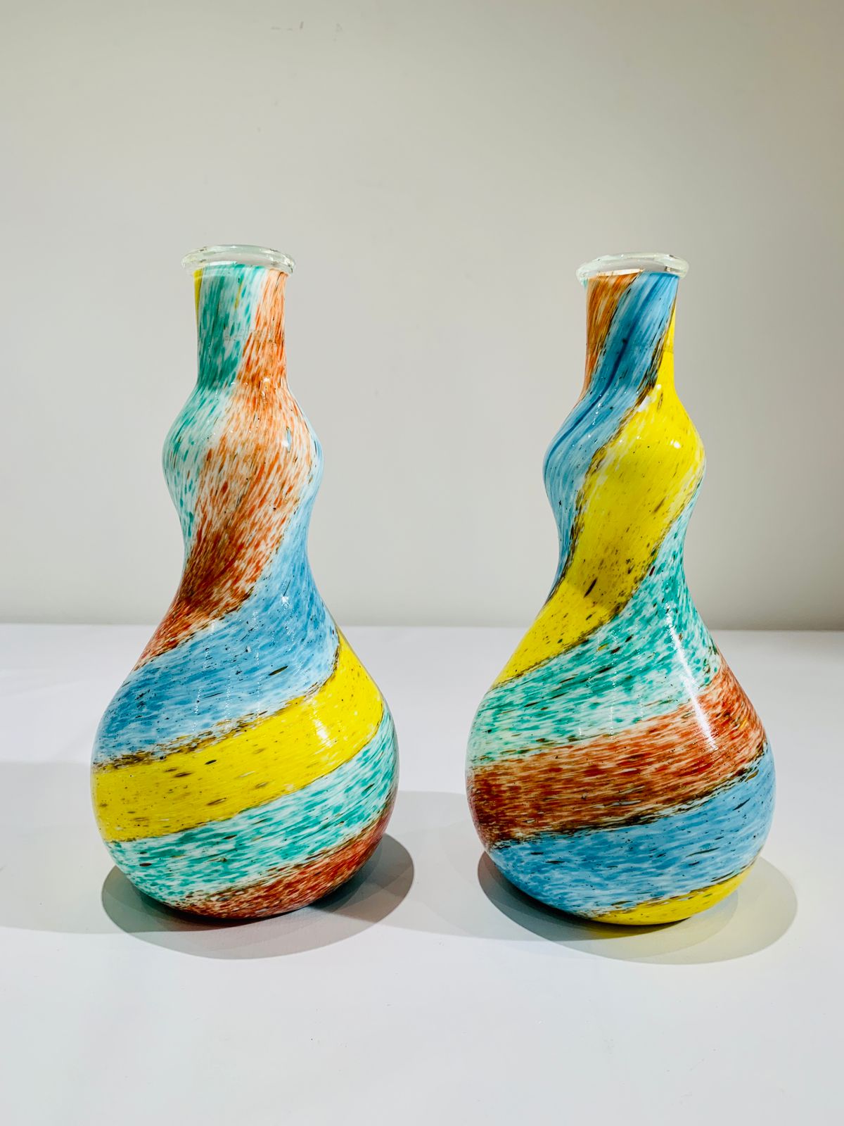Murano Dino Martens por Fratelli Toso 1950 par de vasos em vidro artístico soprado de Murano com pigmentos e borda aplicada. Peça única.