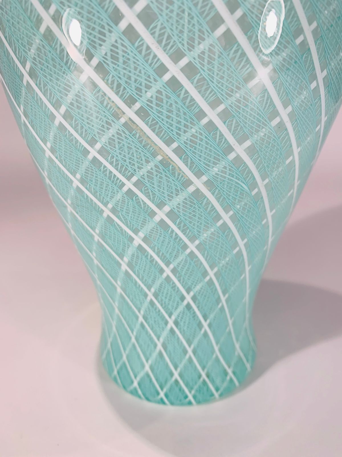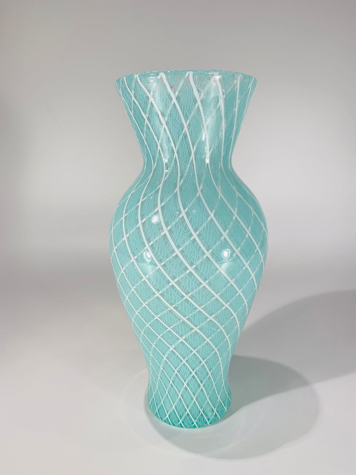 Vidro artístico soprado de Murano VENINI 1940 vaso em vidro artístico soprado de Murano com filigrana intercalada nas cores azul e branco. Peça única.